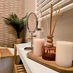 تكتمل الشرفة ومنطقة الجلوس بالمدفأة الحجرية، بالإضافة إلى الصالون والمكتب للعمل لتوفير مساحة مريحة للضيوف. ولمزيد من الراحة، تشتمل الشقة على التلفزيون بشاشة مسطحة مع قنوات فضائية والتلفزيون متعدد القنوات، مما يضمن للضيوف الاسترخاء خلال ساعات الترفيه. يشتمل الحمام على المرحاض المنفصل وحوض الاستحمام ومجفف الشعر وملاءات الحمام.